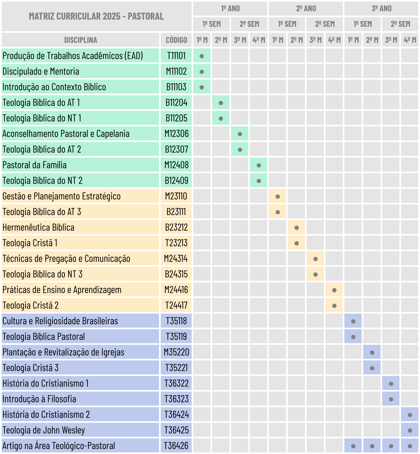 Este curso visa atender pessoas que desejam uma formação teológico-ministerial focada na igreja local e sociedade e dispõem de tempo para um curso de três anos.